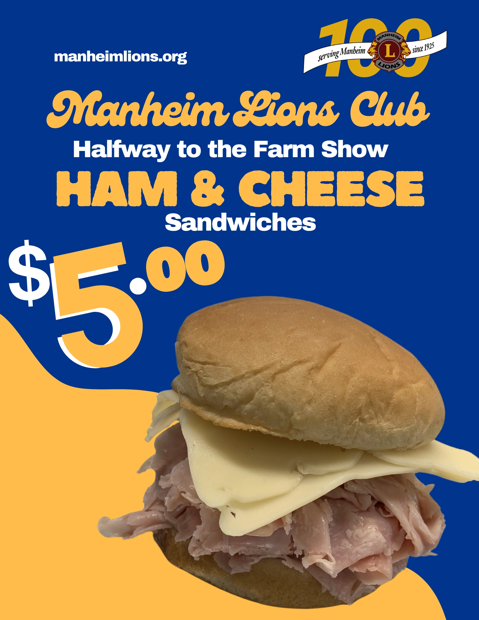 Support our fundraising efforts by purchasing delicious Ham & Cheese sandwiches from the Manheim Lions Club! Our sandwiches are made with 5oz of Ham and 1oz of Swiss Cheese. Great for easy lunches!